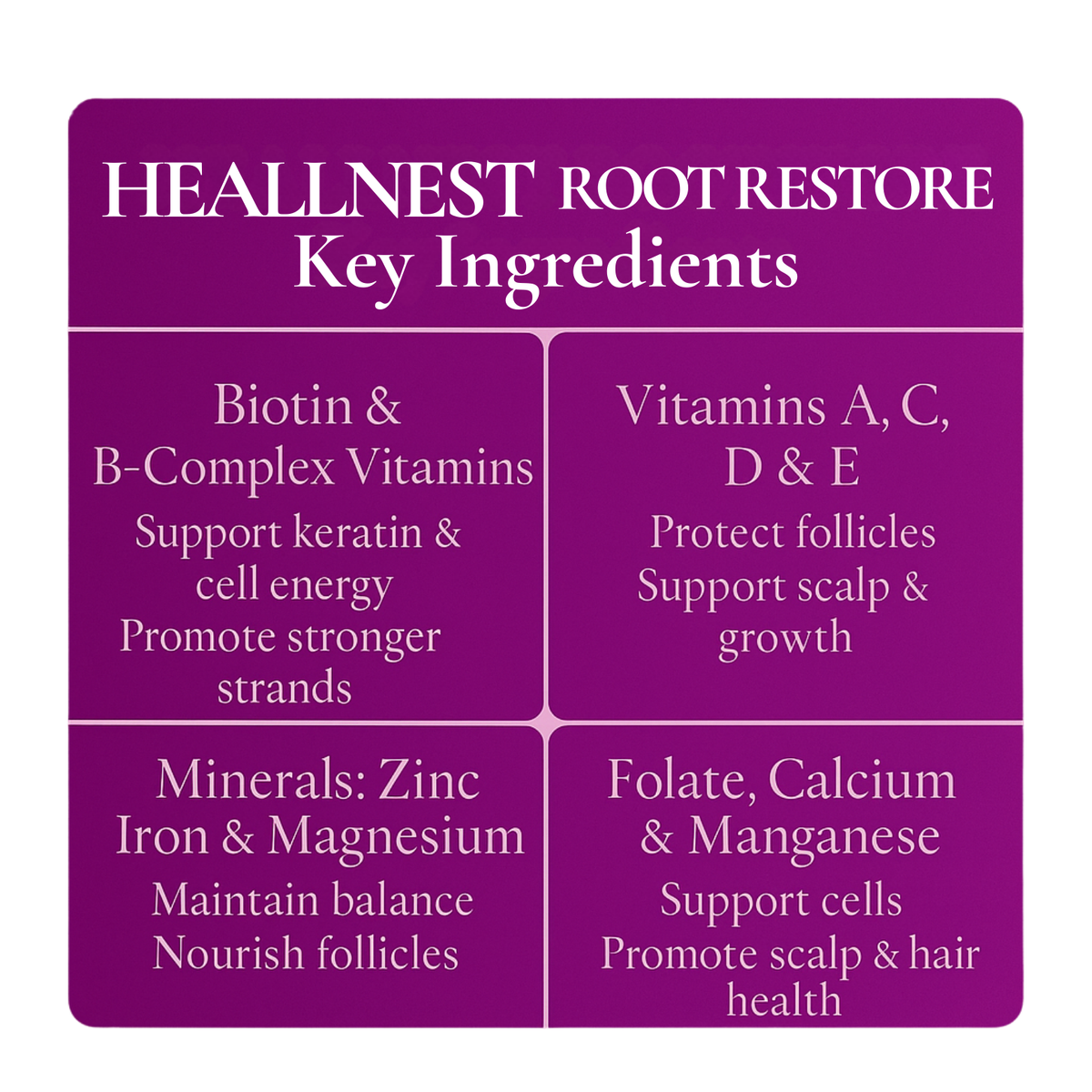 You have tried oils, shampoos, treatments, everything. Root Restore is the boost your routine was missing. Clean ingredients, simple daily capsules, and real results that show up in the mirror.